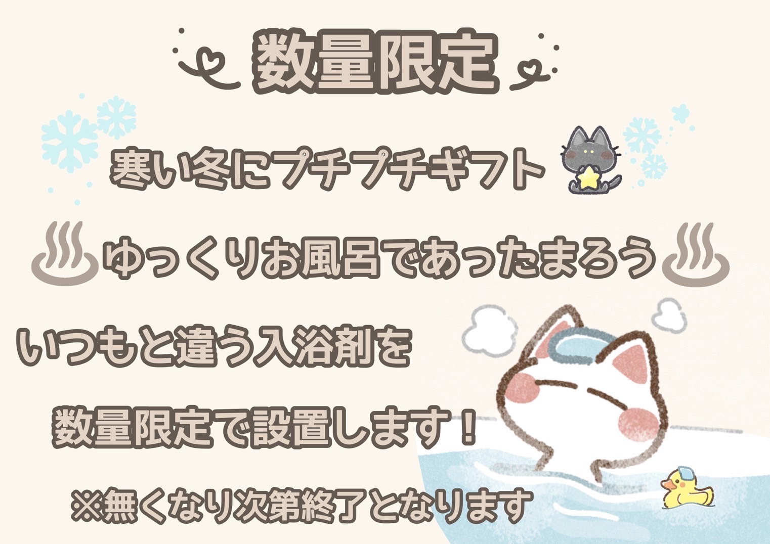 数量限定・17日から🛁寒い冬に、ささやかなプチプチギフトをご用意しました🎁